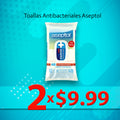 2 paquetes de Toallas Antibacteriales Aseptol de 40 piezas cada uno, por el súper precio de $9.99